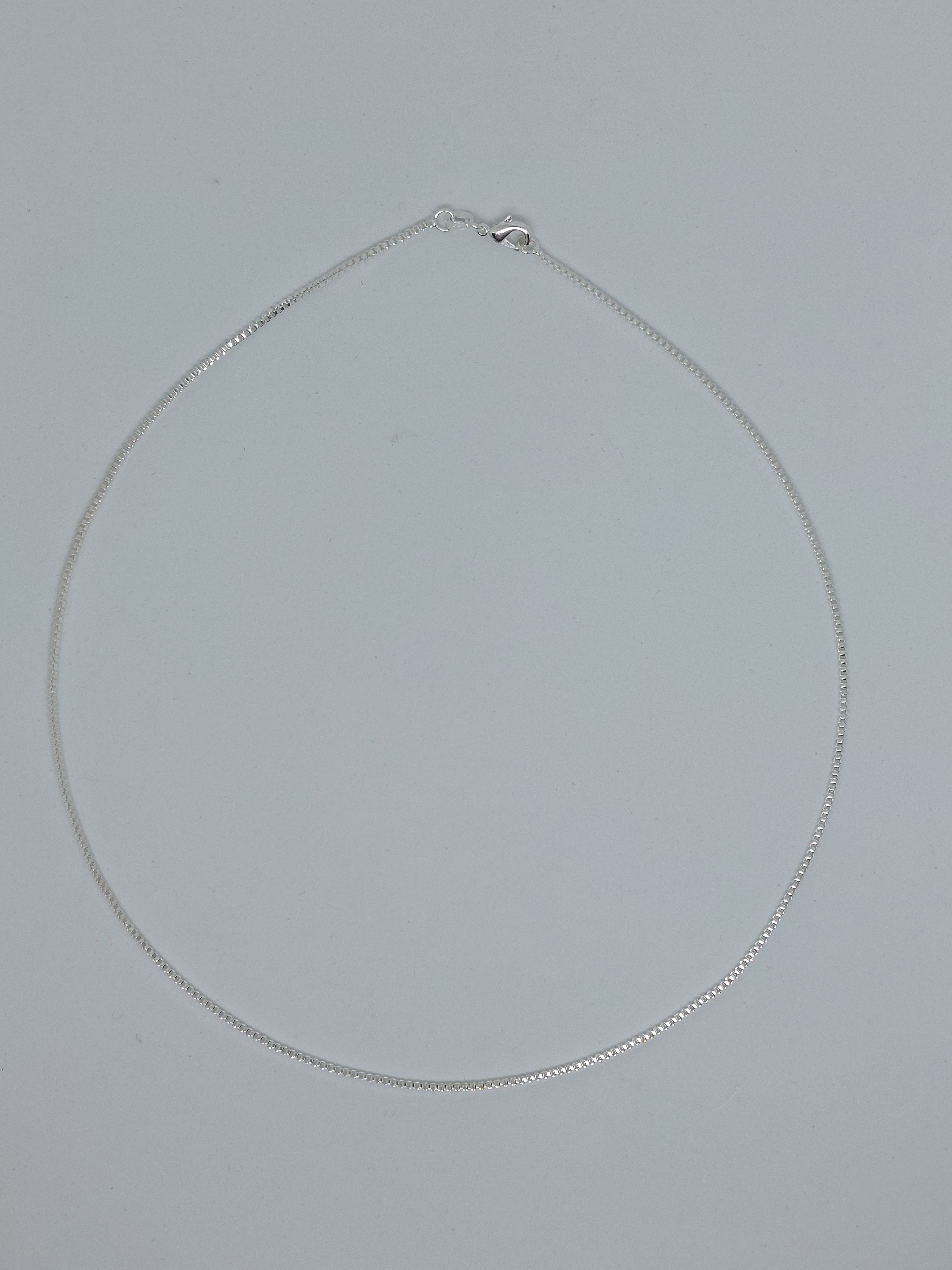 Echt zilveren ketting van circa 45 cm lang en een breedte van +/- 1.5mm.